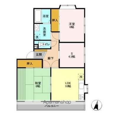 | 間取り | 2LDK(LDK10 洋6 和6 S4.5) | 主要採光面 | 南 |